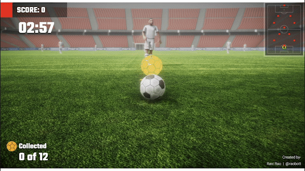 I thought of a football game but with a difference, the player would be the ball and a team of 11 members are the opponents. Player needs to control the ball and reach the opposite goal post while evading the opponents and collecting the golden balls on the way within 180 seconds. After this basic idea, a lot of explorations and decisions were to be made around game logic, technical feasibility, timing etc.
