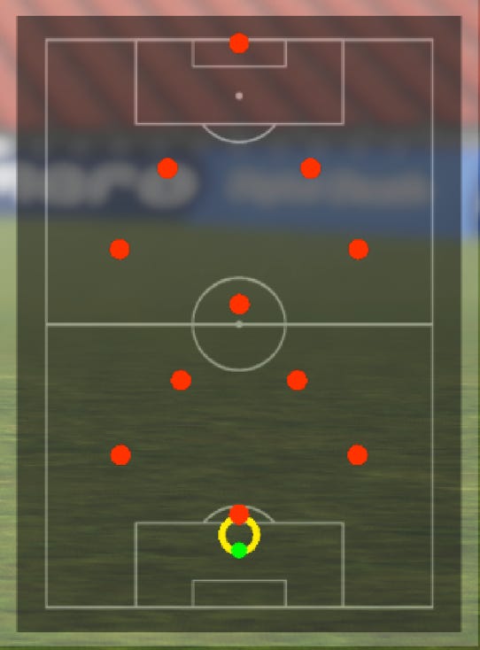 I started building the game and AI logic by referring to the 4-3-3 positions on the football field and placed the opponents players accordingly.