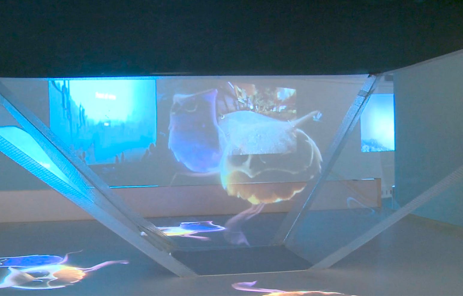 the user interacts with a physical globe, lit by a light source (the sun). And then, based on the touch and rotational gestures on the globe, the owl changes behaviour. In the process, the user interacts with the owl.