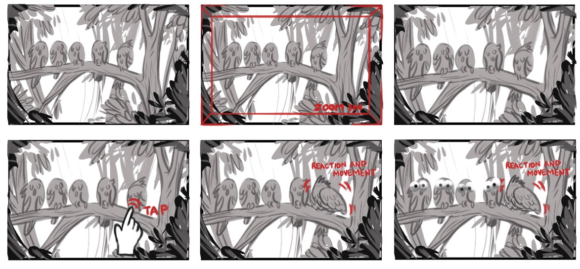 Based on the concept, we drafted a ‘Story’ which was a sequence of events around the owl and drafted a storyboard which would act as the guideline for the processes to follow.