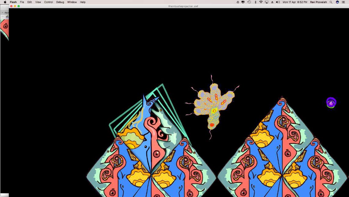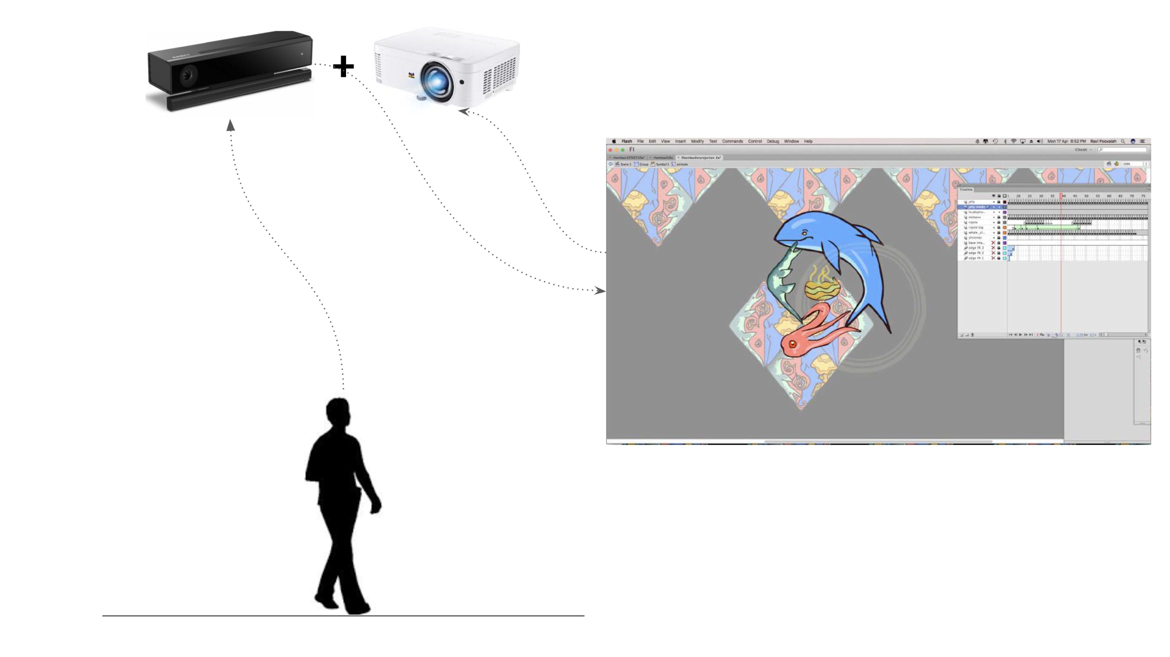 A python script snaps the cursor on the corresponding tile on the screen and the animation on that particular tile is played. Which is projected on the floor through the projector.