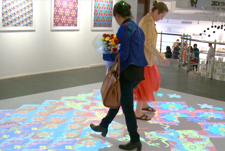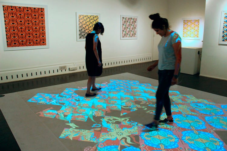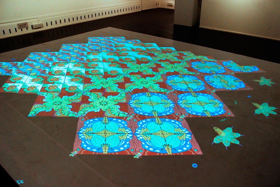 Further, the tiles are tessellated. Which is a visual technique that dovetails images with images to morph into one another. The tessellated tiles, in turn, have been animated and then made interactive to be stepped upon in order to activate the chosen sea organisms and get a glimpse of the world that lies hidden from our usual vision.