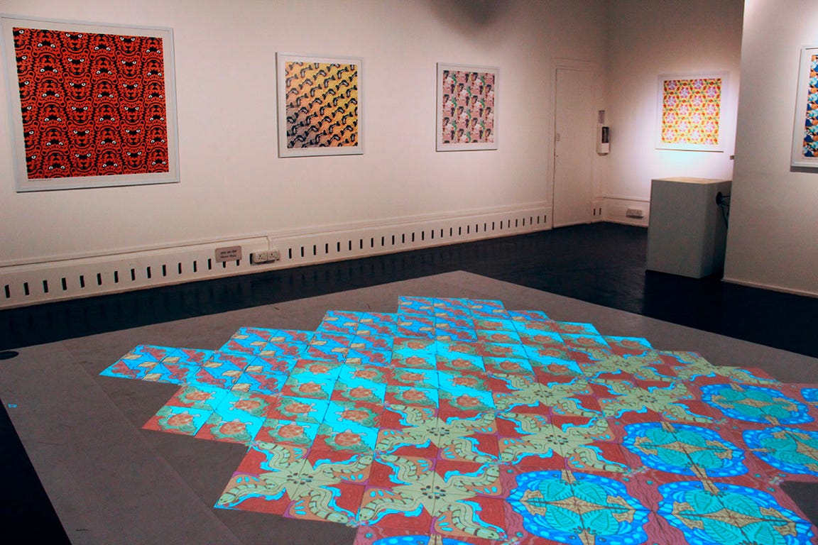 We combined a Motion sensor with a projector and installed it on the ceiling. The projector was used to project the tessellation on the floor while the motion sensor tracks the movement of people on the floor.