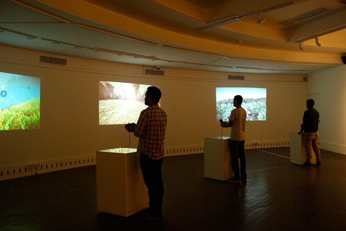 We started discussing these points and it lead us to developing a system which involved a first person interactive wall projection installation, in which the user can experience a certain character’s view of the world around them. Through this installation we gave a glimpse of how different animals actually perceive their surroundings taking into consideration on their eye level, visual colour palette, speed of their actions, etc.