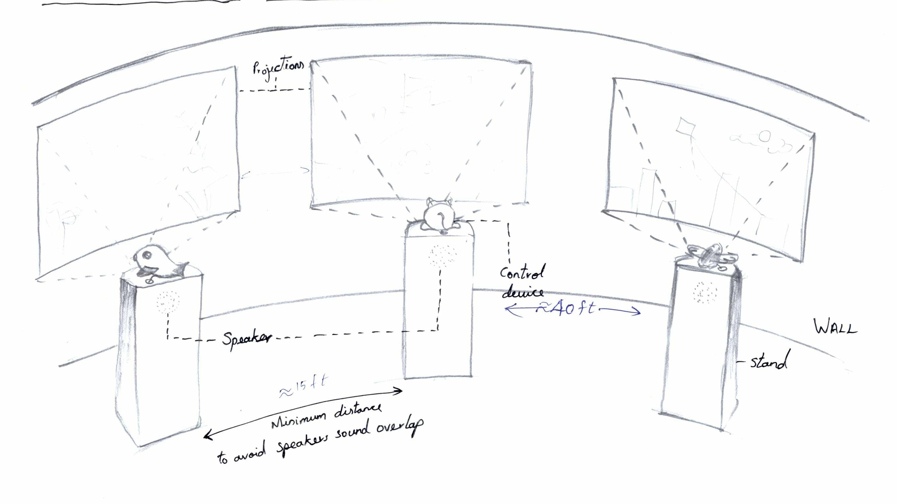 Initial rough layout based on the story and the timing of the interactive experience