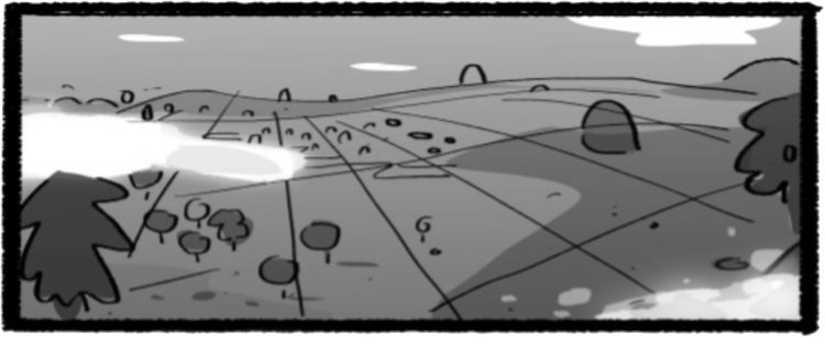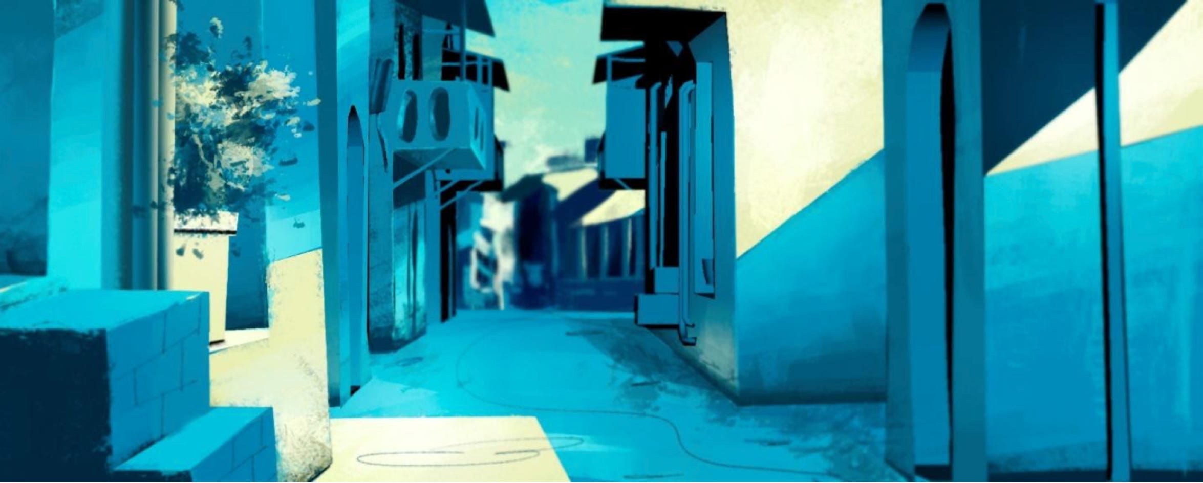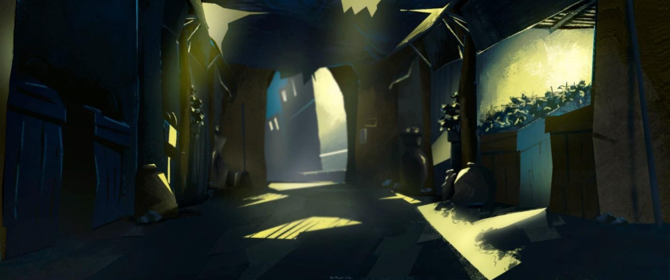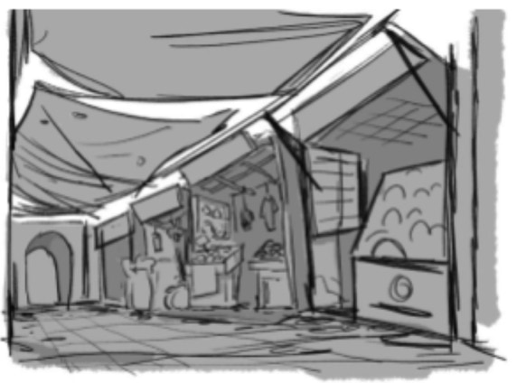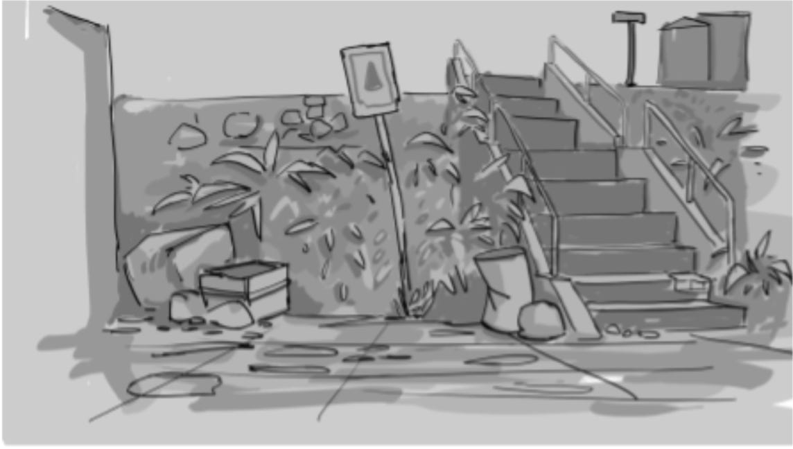 Based on our research, mood boards observations, the concept artist helped us visualise the scene in the proposed colour palette
