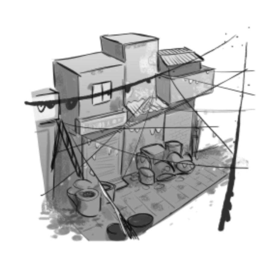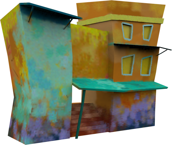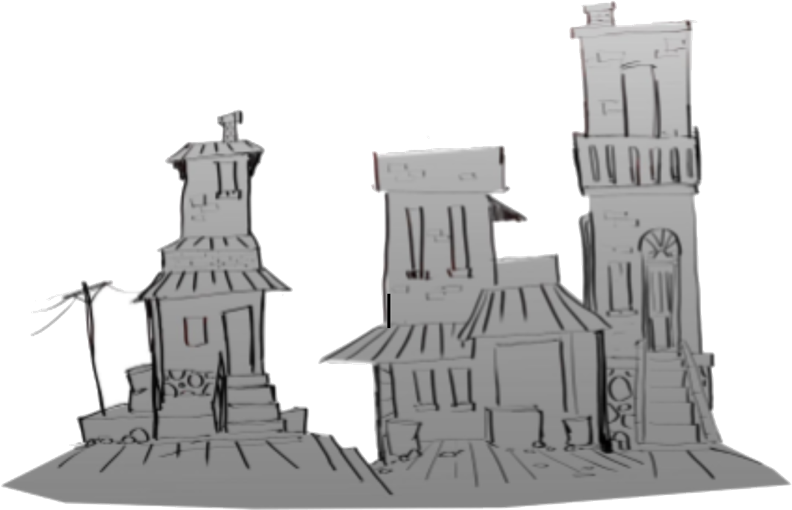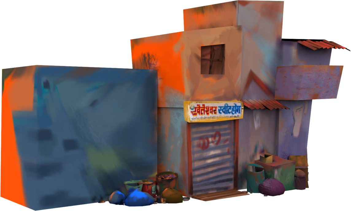 We used grungy hand painted textures rather than procedural textures to achieve a unique stylised and vibrant look and feel of the environment.