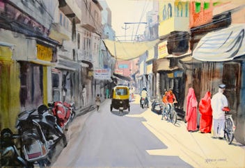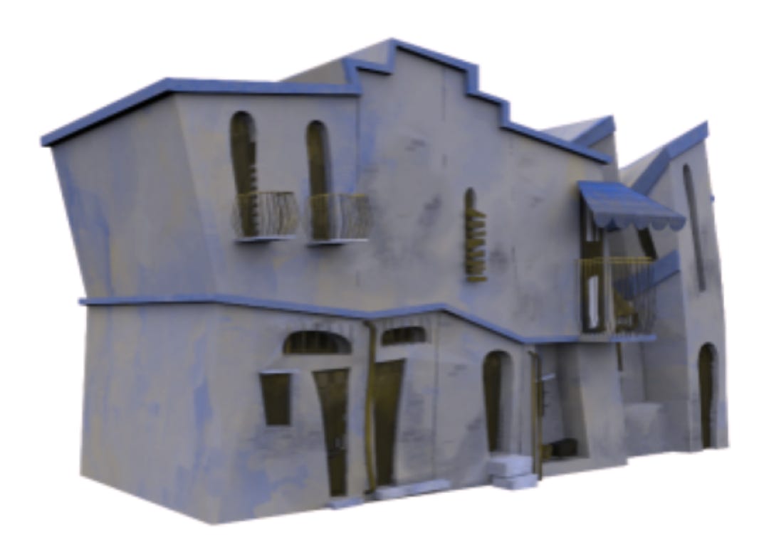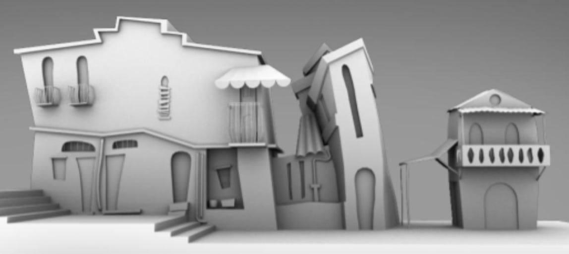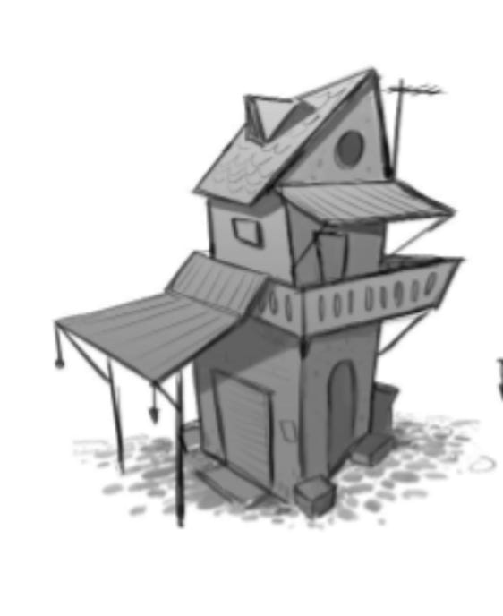 We designed a library of Houses, markets, cars, cows, hand carts etc.